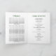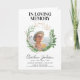 In Loving Memory program with tropical botanical foliage and faux gold accents, featuring on the front cover a photo of your loved one, their name, dates, the memorial venue, date of the event and the whole program is beautifully designed with greenery throughout. On the inside is an obituary and order of service; and on the back a thank you note and the venue of the wake.
