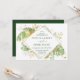 This modern tropical wedding invitation features green and gold exotic foliage. An elegant geometric gold frame highlights the dark green text. Gold splatters accentuate the elegant botanical design and brings a bit of sophisticated whimsy to the invitation. This island oasis invite is perfect for any outdoor, beach or destination wedding.