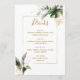 Tropical Foliage Gold & Green Wedding Bar Drinks Menu
