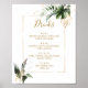 Tropical Foliage Gold Wedding Bar Drinks Menu Sign