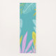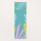 Dark turquoise background with tropical foliage in light turquoise, yellow and pink with custom elegant font monogram