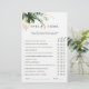 This bridal shower game features watercolor green tropical foliage, monstera leaves, palm tree leaves, banana leaves, and faux gold leaves accents with a tropical pattern on the back. For more advanced customisation of this design, please click the BLUE DESIGN TOOL BUTTON. Matching items are also available.