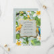 Announcing the date of your upcoming beach or Hawaii destination wedding has never been more exciting than with our tropical-themed save the date. The lush tropical forest, palm leaves, yellow parrots, and plumeria flowers beautifully illustrated on the save the date will transport your guests to a paradise they won't want to miss.