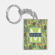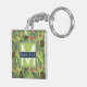 Tropical Fruit Sketch on Green Pattern Key Ring