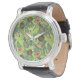 Tropical Fruit Sketch on Green Pattern Watch