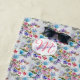 Beach Babe on this beautiful monogrammed towel! .. .. Colourful, Cheerful and Whimsical watercolor paw print paintings. Airy, carefree and customisable. Blue, Pink, Yellow, Purple, Orange,Mauve, Peach, Aqua, Red are just a few colours that are featured! My Dog’s paws dipped in watercolor, then I created flowers, butterflies out of the prints, leaves, green fronds and maybe a surprise within the painting!.. Fabulous gift giving products for many special occasions like weddings, birthdays, anniversaries and more!