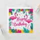 Celebrate in style with our tropical fun birthday design featuring playful flamingo illustrations! This vibrant, pre-designed artwork brings a splash of tropical paradise to any party with bright colors, palm leaves, and cheerful flamingoes.