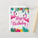 Celebrate in style with our tropical fun birthday design featuring playful flamingo illustrations! This vibrant, pre-designed artwork brings a splash of tropical paradise to any party with bright colors, palm leaves, and cheerful flamingoes.