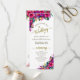 This beautiful wedding program features an elegant tropical garden design with hibiscus flowers and bird of paradise in vibrant shades of hot pink, fuchsia, purple, and yellow, along with palm leaves and tropical greenery. The titles are written in fancy gold script calligraphy, and there is space for your ceremony and wedding party details, as well as a short thank you for your guest. Wonderful way to welcome your friends and family to your wedding celebration. Perfect for destination weddings in exotic locations.