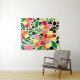 "Tropical Garden Dots Print" features bold, colourful flowers with lush green leaves, set against a playful abstract pattern of black dots. This vibrant design brings a lively, tropical vibe to any space.