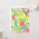 Watercolor painting of hibiscus flowers, branches with plumeria and various palm leaves. Originally painted in my sketchbook.