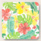Tropical garden, hibiscus plumeria and palm leaves coaster
