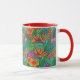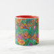 Colourful, Stylised painting collage of vibrant tropical flowers on a coffee mug by Lisa Lorenz