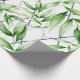 Watercolor jungle leaf gift wrap with a purple geometric pattern.