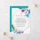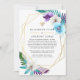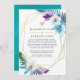 Turquoise and gold geometric tropical reduced wedding guest list announcement with accents of purple.. In these uncertain times, it can happen that you may have to hold a smaller wedding than originally planned. This announcement card will take away the awkwardness and take a load off your mind! You can furthermore provide an option to join you for a virtual ceremony.