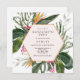 Tropical bachelorette invitation featuring a watercolor wreath of lush tropical greenery and hibiscus flowers. Personalise with your information or click "Click to customise further" to edit font styles, size and colours.