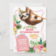 Tropical Girl pink Sloth Birthday Invitation, Jungle Animal Let's Hang Out Girl Birthday Invite, Editable Kids Birthday Invite