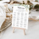 This tropical gold foliage alphabetical seating chart is perfect for a rustic wedding. The design features beautifully hand-painted illustrated tropical summer gold and green foliage. This sign can be used to organise your guests alphabetically or by table number. It includes enough room for about 150 wedding guests. Make room for more (or less) by clicking the customise button and increase or decrease the size of the font. Personalise this sign with the names of the bride and groom and the date.