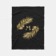 Tropical Gold Glitter Palm Tree Fronds on Black Fleece Blanket