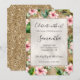 Tropical Gold Glitz Pink Hibiscus Floral Invitation