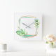 Tropical Gold Leaf Poligonal Mint white Grey Square Wall Clock