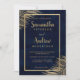 Tropical gold palm tree beach navy blue wedding 2 invitation