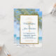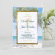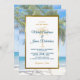 Invite your guests to help you celebrate your special day with this beautiful invitation featuring modern script, ocean blue and gold text including an artistic palm tree and metallic gold frame on the front of the card. A slightly transparent photo of two connecting two palm trees on a white sandy beach with turquoise water adorns the front and back of the card which you can replace with your own photo(s). The palm trees represent "And two shall become one".