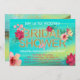 Pretty and Modern Gold foil and glitter watercolor Tropical Breeze Bridal Shower invitations. Pretty fresh flowers in colours of bright pink, yellow, peach and aqua. Watercolor blue and aqua waves of colour background. Faux gold glitter fonts and accents.