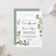 This tropical green leaves cena especial invitation is perfect for a simple Spanish rehearsal dinner. The design features hand-painted beautiful green leaves, adorning a gold geometric frame.