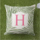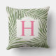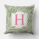 Tropical Green Palm Leaf Beige Monogram Initial Cushion