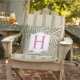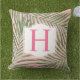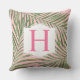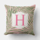 Tropical Green Palm Leaf Pink Monogram Initial Cushion