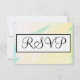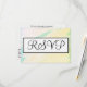 Tropical yellow and green with hint of pastel pink and blue watercolor background. RSVP is written in elegant black script inside white and geometric rectangle. Personalise backside details in black typography against crisp white background. Original Artwork Design by TamiraZDesigns.