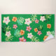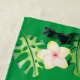 You'll always feel like you're in the tropics with tropical print beach towel. This design has lush green leaves and colourful flowers set on a dark green background.
