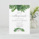 Trendy sage green and white watercolor tropical leaves and white magnolias wedding brunch invitation.