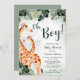 Tropical Greenery Giraffe Oh Boy Baby Shower Invitation