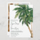 Tropical greenery script palm tree wedding invitation with watercolor exotic palm tree illustration and an elegant brush font typography. Perfect for Spring Summer wedding ceremony party, add 3 of your favourite photos at the back.