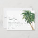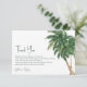 Tropical greenery script palm tree bridal shower thank you card with watercolor exotic palm tree illustration and an elegant brush font typography. Perfect for Spring Summer bridal shower party.