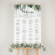 This tropical greenery white alphabetical seating chart is perfect for a rustic wedding. The design features green palm leaves bouquets with lovely white flowers.