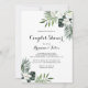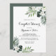 This tropical greenery white floral couples shower invitation is perfect for a rustic wedding shower. The design features green palm leaves bouquets with white lovely flowers.