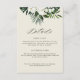black script with palm leaves greenery and white watercolor flowers. This template is for wedding information such as accommodation, directions, and other details you may want your guests to know.