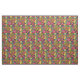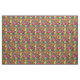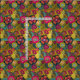An abstract floral pattern in bright shades of green, gold and magenta pink.