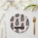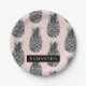 Tropical Grey & Pink Pineapple Pattern With Name Paper Plate