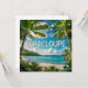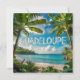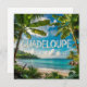 Discover this magnificent watercolor illustration of Guadeloupe, capturing the lush beauty of the island. The design features vibrant tropical landscapes, with imposing palm trees, lush banana leaves, a fine sandy beach, a sparkling turquoise sea and lush mountains in the background. The word 'GUADELOUPE' is highlighted in white letters, adding a touch of classic travel memory. Perfect for nature lovers, travelers or those who dream of the Caribbean. Ideal for personalizing posters, t-shirts, tote bags, cups or postcards. Bring a touch of tropical escape to your everyday life.