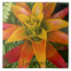 For tropical houseplant fans! Ceramic tile that features the photo image of a tropical Guzmania plant, a type of bromeliad. Colours include red and yellow bracts. A lovely, floral design! Makes a pretty kitchen trivet. Select your ceramic tile style.