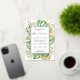 This elegant tropical elopement reception invitation features green and gold palm, philodendron, and fern leaves. An elegant gold foil frame highlights the gold foil text. Gold foil splatters accentuate this exotic botanical design and brings a bit of modern whimsy to the invitation. "Happily Ever After Celebration" along with the bride and groom's names are featured at the top. Wedding vow details and reception location and date are detailed on the front. RSVP information is on the back of the invitation.