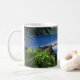This ceramic coffee mug is shown with a photo print of a beautiful ocean scene in Hawaii.