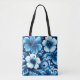 Tropical Hawaiian Flowers Hibiscus Blue Pattern Tote Bag