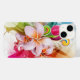 Shown is a pretty tropical flower print on this iPhone 14 case.