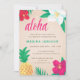 Tropical, Hawaiian luau party invitations with bright colourful flowers and pineapple hand-drawn on a tan background. Perfect for Hawaiian parties for any occasion!