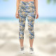 Tropical Hawaiin Yellow Hibiscus Flowers on Blue Capri Leggings